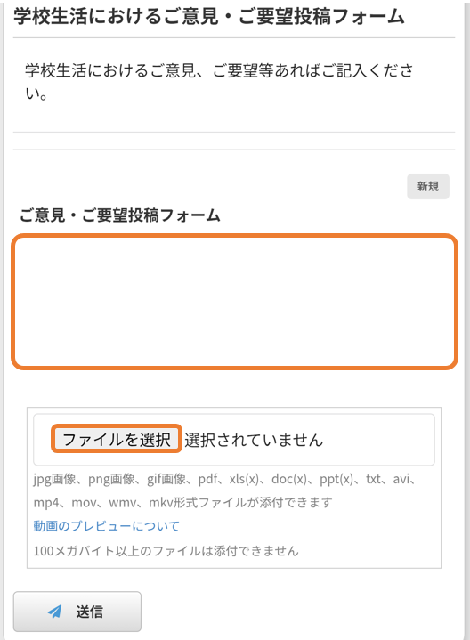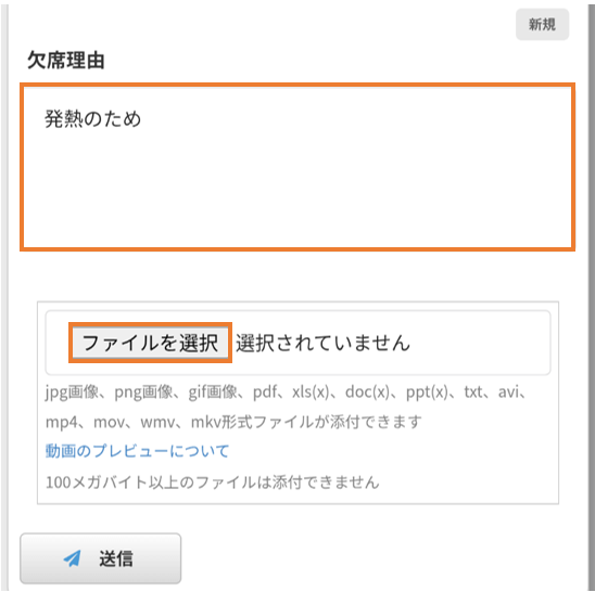 ファイル添付を行う場合、「ファイルの選択」を押し、添付するファイルを選択してください。