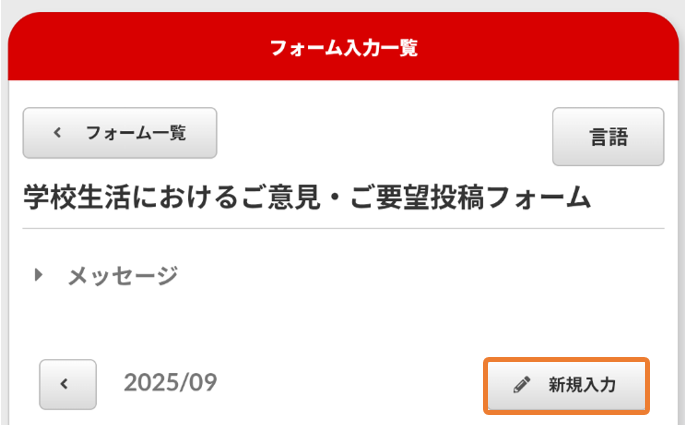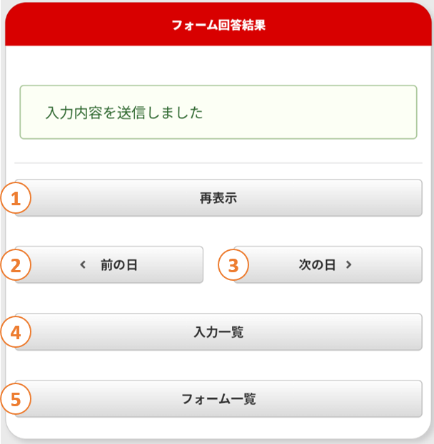 フォーム入力一覧画面に戻ります。⑤ 「フォーム一覧」ボタン
