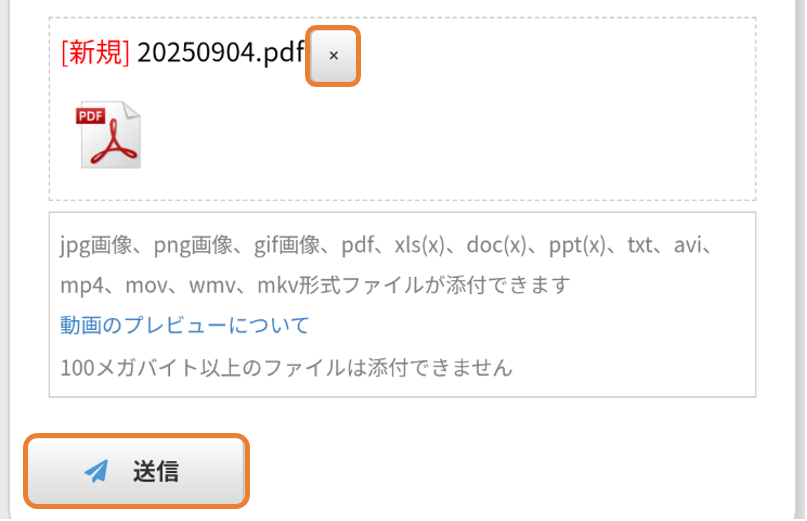 「×」を押すと、ファイルを削除できます。