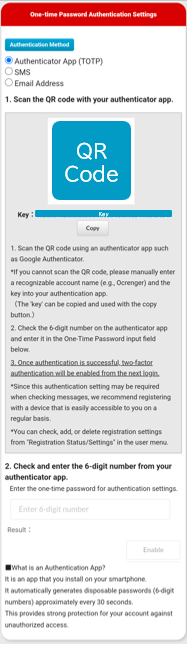After completion of the settings, if two-factor authentication is required, please authenticate using the method you have set up.