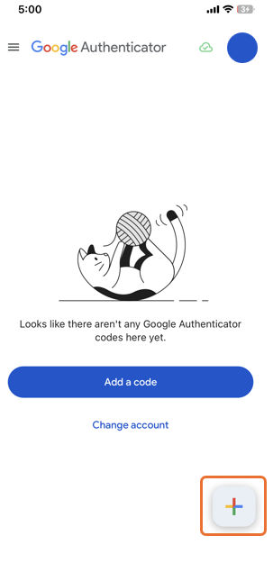 ➁ Launch the authentication app and tap the '+' button.