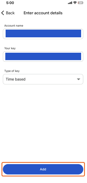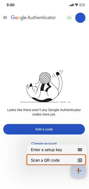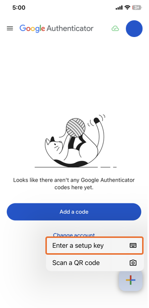 If the QR code cannot be scanned, select 'Enter a setup key' in step 3.