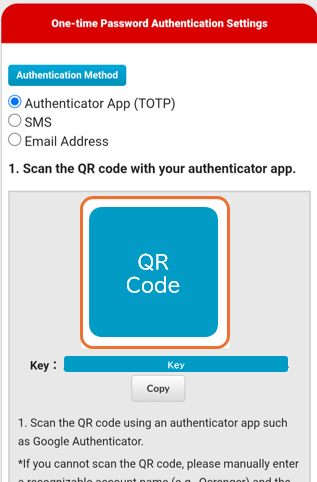 If the authentication app (TOTP) method is already configured, you can check the registered 'Key' from the 'Check QR Code' button.