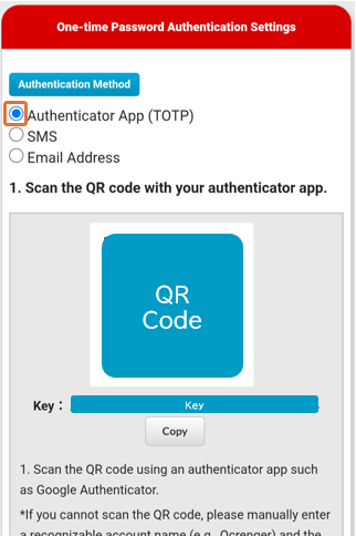 * TOTP authentication apps that have been confirmed to work are Google Authenticator, Microsoft Authenticator, and Authy.➀ Please select Authentication App(TOTP).